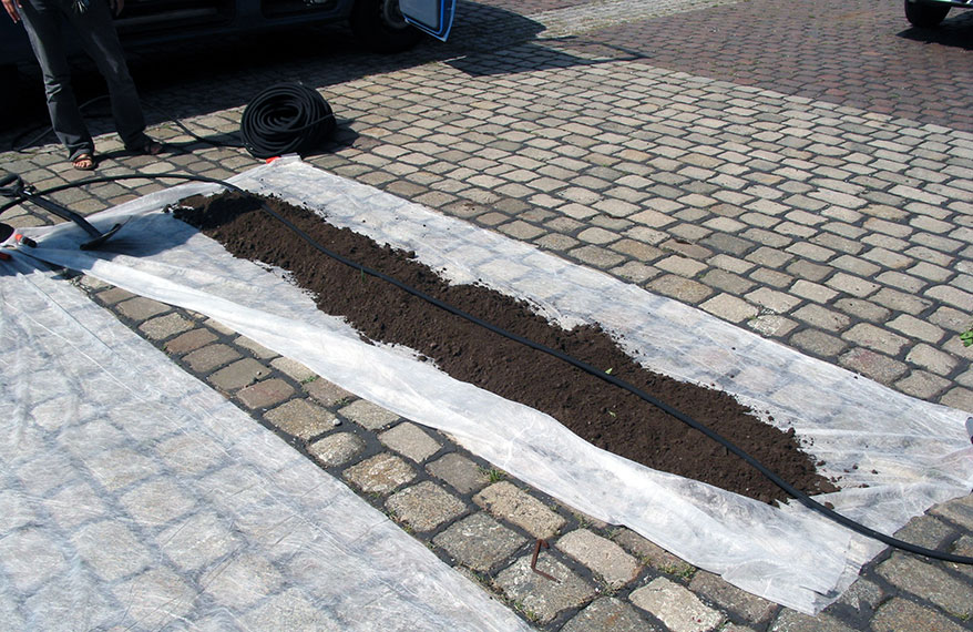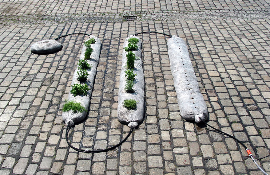 CITY FARMING PLANT MODULES. Hoses, fiber cloth and fertilized soil.