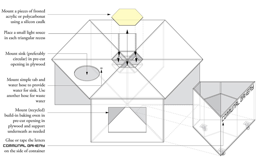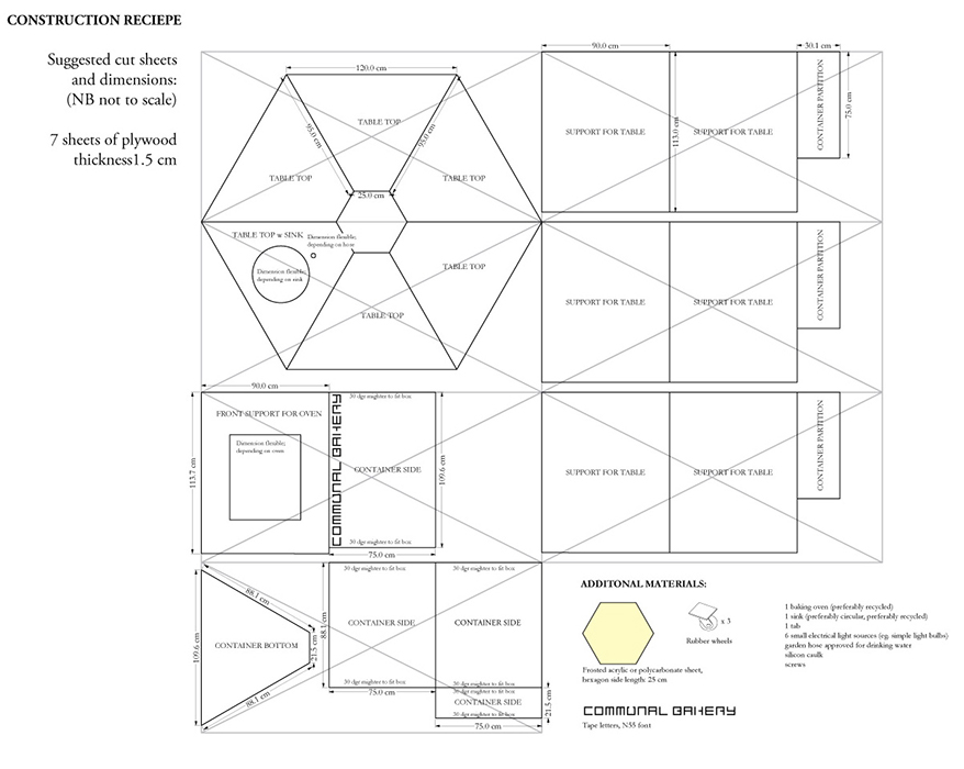 COMMUNAL BAKERY is constructed mainly from plywood plates or similar. It can easily be assembled by anybody